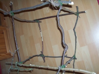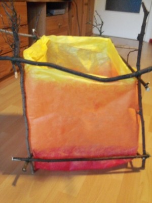 Diese Bastelarbeit eignet sich für größere Kinder ab 10 Jahren, Jugendliche und Erwachsene. Man benötigt 12 etwa gleichlange Naturhölzer, gerne unterschiedlicher Bäume und mit markanten Merkmalen, einen großen Bogen Strohseide in einer Wunschfarbe, Nadel und Faden, sowie Bindedraht oder ein festes Band.