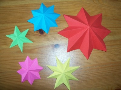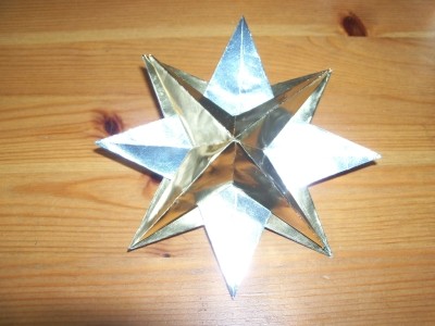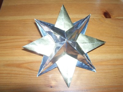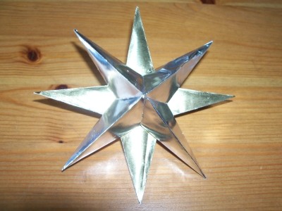 Diese Bastelarbeit eignet sich für Kinder ab 6 Jahren. Bei den plastischen Sternen muss ein Erwachsener etwas helfen. Man benötigt Bastel-Alufolie und eine Schere.
