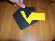 2. Das schwarze Tonpapier wird nach der Anleitung für den Faltdrachen gefaltet und mit