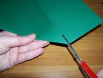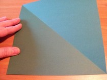 1. Wer kein quadratisches Stück Tonpapier hat, macht sich eins. Bei einem rechteckigen Stück Papier, die schmale Kante auf die lange Kante falten, so dass sich ein Dreieck ergibt.