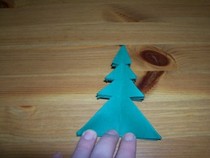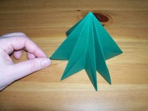 Wenn alle Öffnungen nach innen gedrückt sind und man den Baum flachdrückt, sieht man deutlich die typische Tannenform.