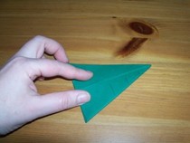 10. Es ergibt sich ein Dreieck, bei welchem nun die obere rechte Kante zur Mitte gefaltet wird.