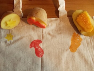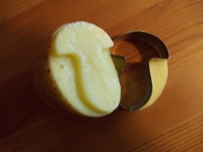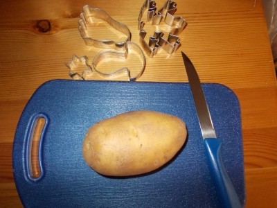 Eine recht einfache Bastelarbeit. Bei der Herstellung der Kartoffelstempel brauchen Kinder bis etwa 8 Jahren noch Unterstützung. Stempeln können die Kinder schon ab zwei Jahren.