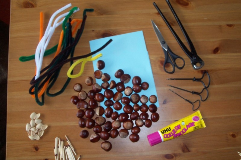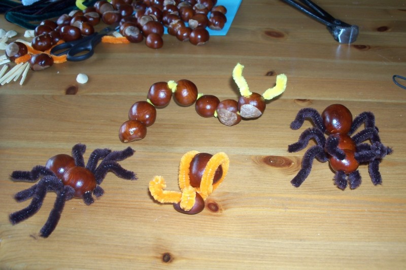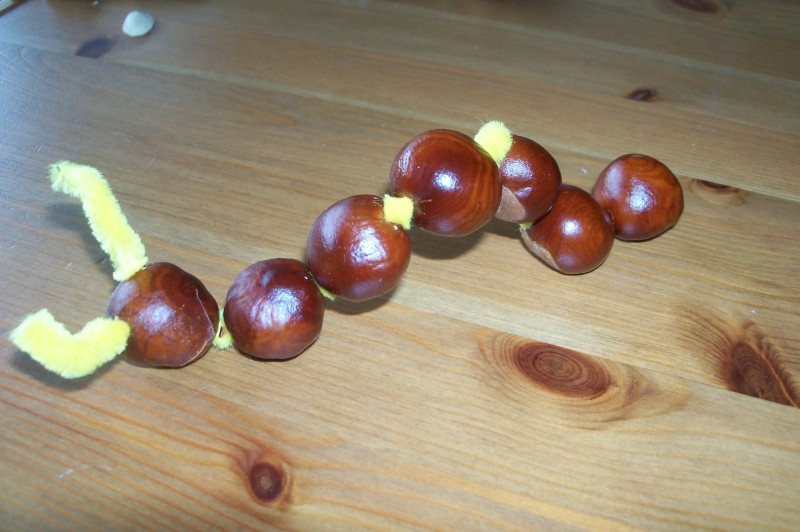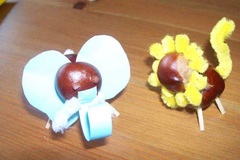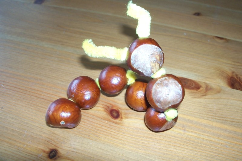 Hier zeige ich ohne viel Erklärungen, wie aus Kastanien, Hölzchen, Chenilledraht, Pistazienschalen und Papier die unterschiedlichsten Kastanientiere gebastelt werden können. Diese Bastelarbeit eignet sich für Kinder ab 3 Jahren (z.B. der Igel), wenn man ihnen beim Bohren hilft.