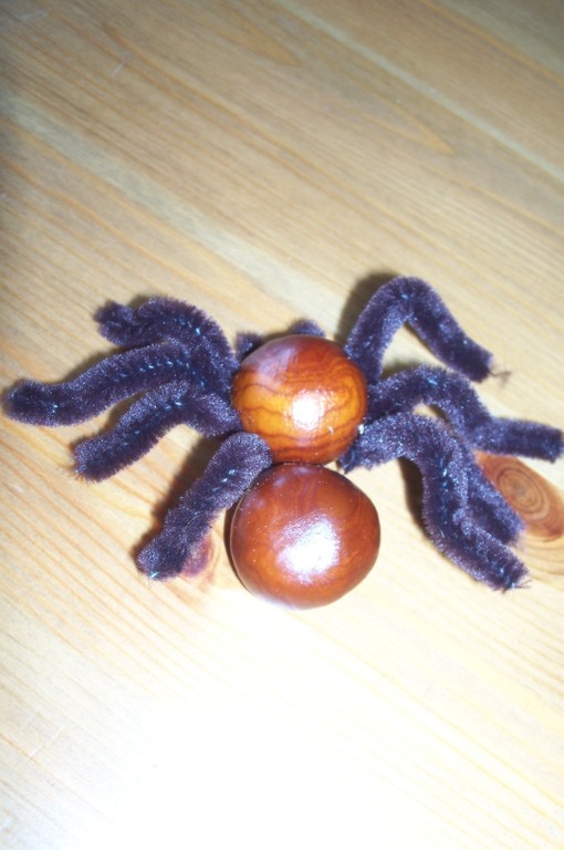 Nach demselben Prinzip kann auch eine Magnetspinne über ein weißes Papp-Spinnennetz geführt werden.