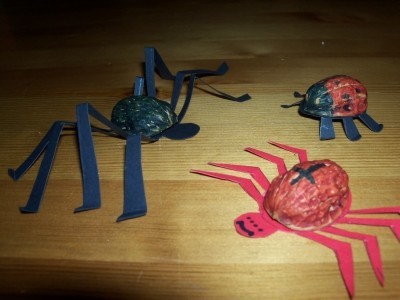 Diese Nusstierchen gelingen mit etwas Hilfe schon Vierjährigen. Auch in der Grundschule haben die Kinder noch Spaß daran.