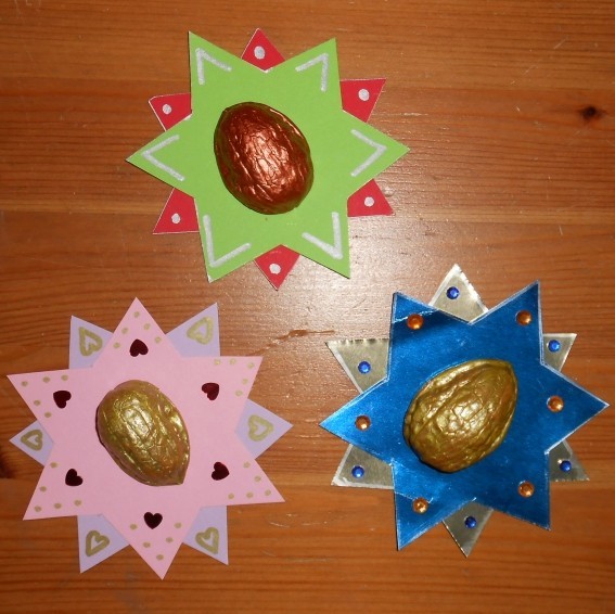 Wer hatte denn alles Walnüsse in seinem Nikolausschuh? Wenn diese vorsichtig geknackt werden, kann man mit den Schalen noch hübsche Weihnachtssterne basteln ;)