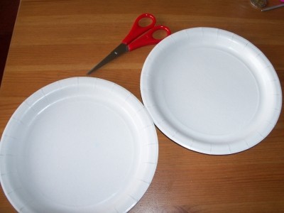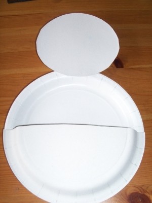 Diese Bastelarbeit eignet sich für Kinder ab drei Jahren. Man benötigt einfache weiße Pappteller, Tonpapierreste, Schere und Kleber.