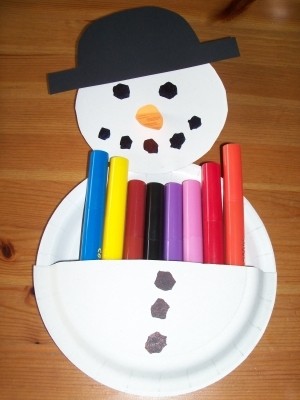 Viele Schneemänner aus kleinen Papptellern können auch einen Adventskalender ergeben ;-)