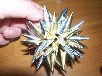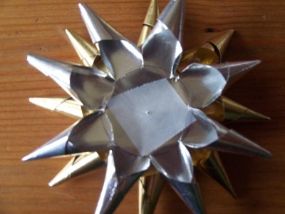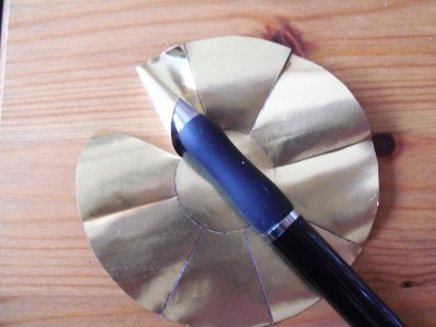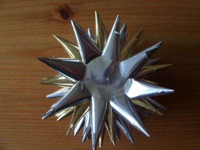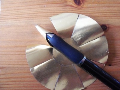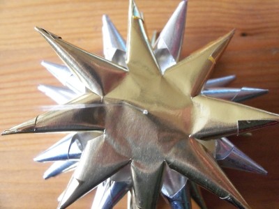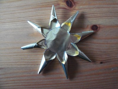 Diese Bastelarbeit eignet sich für Kinder ab 10 Jahren. Man benötigt Bastel-Alufolie, einen Kugelschreiber, eine Schere, Nadel und Faden.